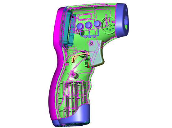 在體溫槍外殼塑膠制品的諸多制造工藝中,最主要的就是注塑成型,而在注塑成型工藝中,最關(guān)鍵、最核心的部分就是體溫槍塑膠模具的設(shè)計(jì)和開發(fā)。
