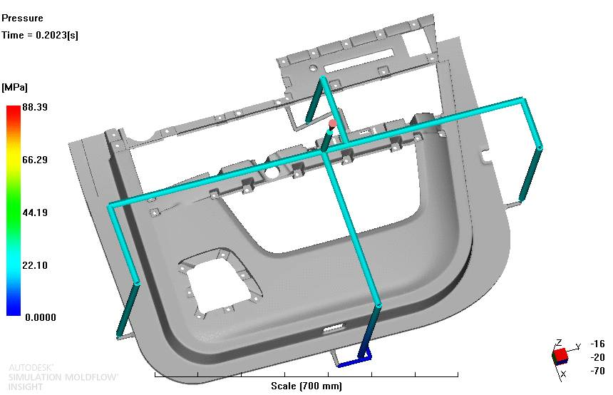 順序閥熱流道控制技術(SVG技術)是一種新型級式控制的熱流道技術,通過油缸控制按順序進膠,解決了傳統(tǒng)多點同步進膠的產品出現外觀缺陷的難題??捎行П苊馄噧韧怙椉霈F熔接痕,氣穴等缺陷,減少流長,降低成型壓力,在外觀要求嚴格的汽車內外飾件上發(fā)揮了巨大的作用。