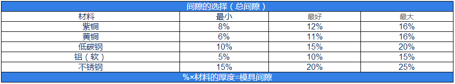 請參照下表選擇模具間隙(表中數(shù)據(jù)為百分?jǐn)?shù))